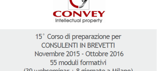 15° CORSO DI PREPARAZIONE PER CONSULENTI IN BREVETTI / NOVEMBRE 2015 – OTTOBRE 2016 Il corso ha l’obiettivo di preparare all’abilitazione a “Consulente di Proprietà Industriale – Brevetti” e a mantenere professionalmente aggiornati in materia di brevetti per invenzione e modelli di utilità. Il corso è per 2/3 fruibile in tempo reale via internet. [SCARICA LA BROCHURE] [SCARICA IL PROGRAMMA/CALENDARIO] more »